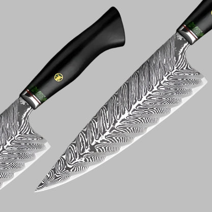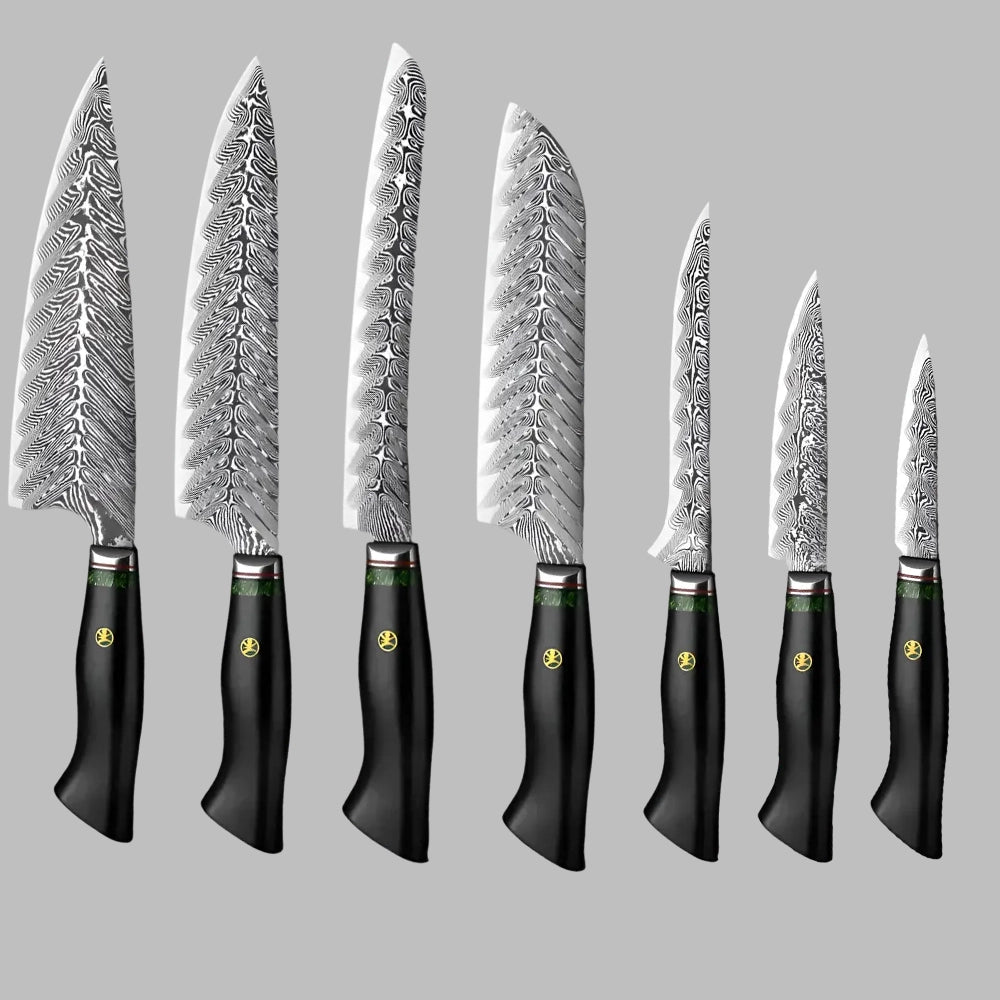 مجموعة سكاكين الطاهي الاحترافية المصنوعة من الفولاذ الدمشقي بمقبض أسود
