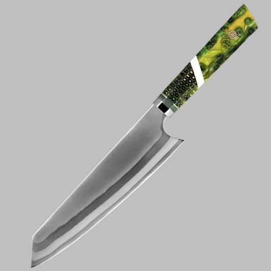 8 Inch Damascus Chef Knife with Stabilized Green Resin Handle