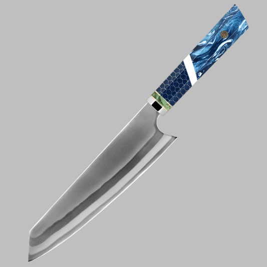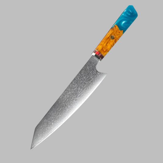 8 Inch Kiritsuke Damascus Steel with Blue Resin Honeycomb Handle