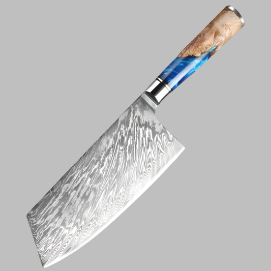 7 Inch Damascus Steel Cleaver Knife With Blue Resin Handle
