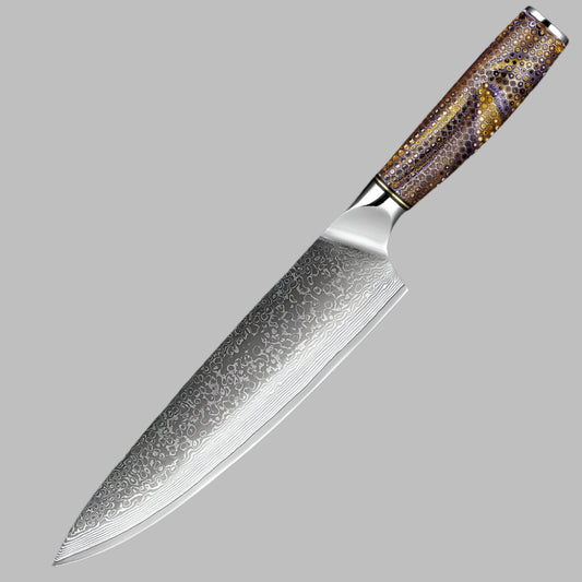 8 Inch Damascus Steel Chef Knife with Resin Honeycomb Handle Design