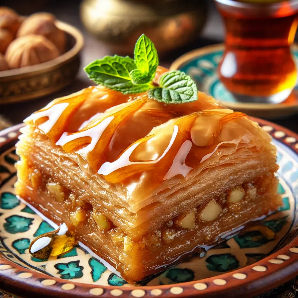 Baklava is een heerlijke Arabische lekkernij die geliefd is vanwege de lagen zoete honingsiroop, rijke notenvulling en schilferig deeg. Dit klassieke dessert vangt perfect de creativiteit van de Midden-Oosterse keuken en is ideaal voor feesten of als decadente lekkernij.