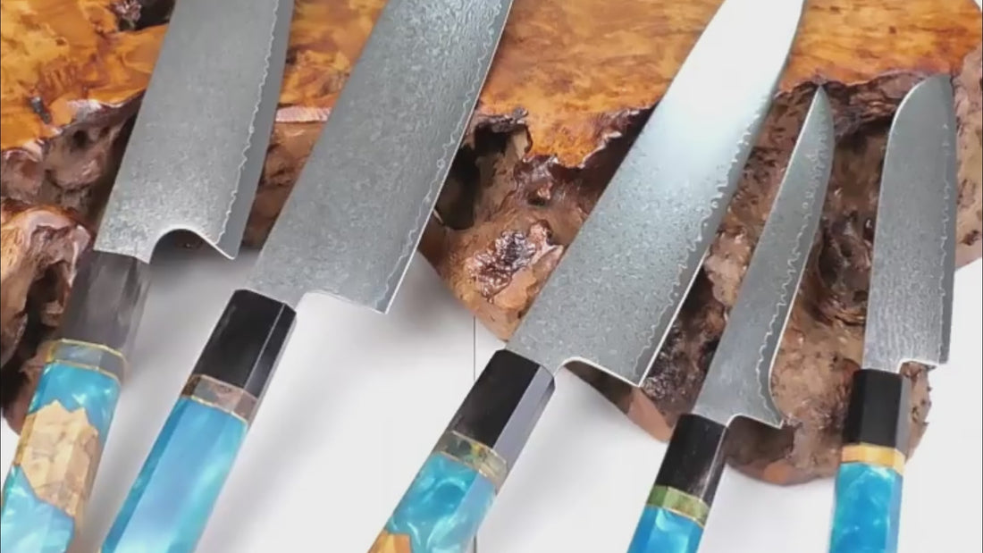 6-Piece VG10 Damascus Knife Set – Blue Resin Handle