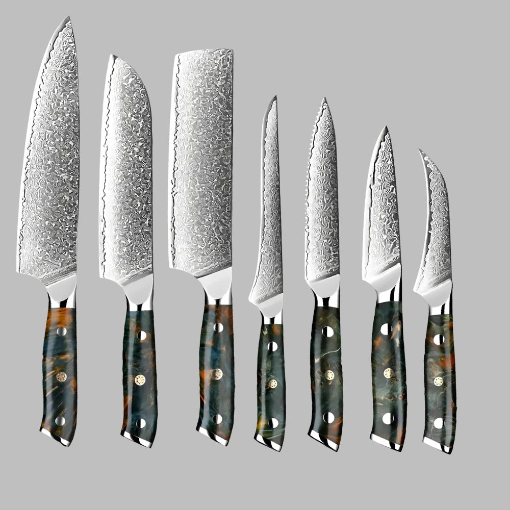 Luxury Damascus Steel Knife Set 7 PCS Pro Chef Recommended