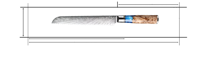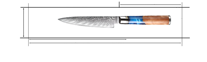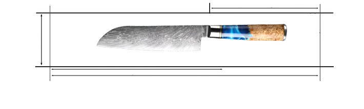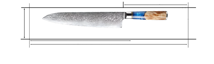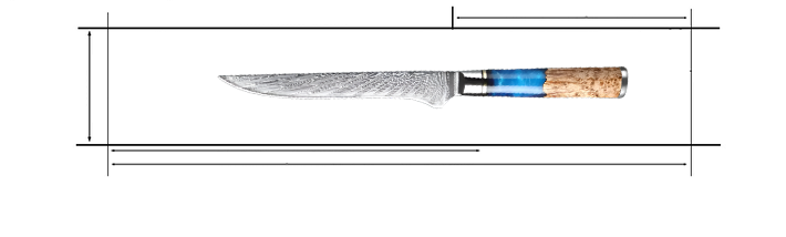This unique Damascus steel knife set offers the ideal fusion of exquisite craftsmanship, outstanding functionality, and longevity. With its gorgeous blue resin and natural wood handle, each piece is a handcrafted masterpiece that offers exceptional ergonomics, comfort, and a touch of luxury. These knives provide accurate and consistent cuts for all culinary tasks, making them ideal for both professional chefs and foodies.