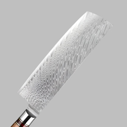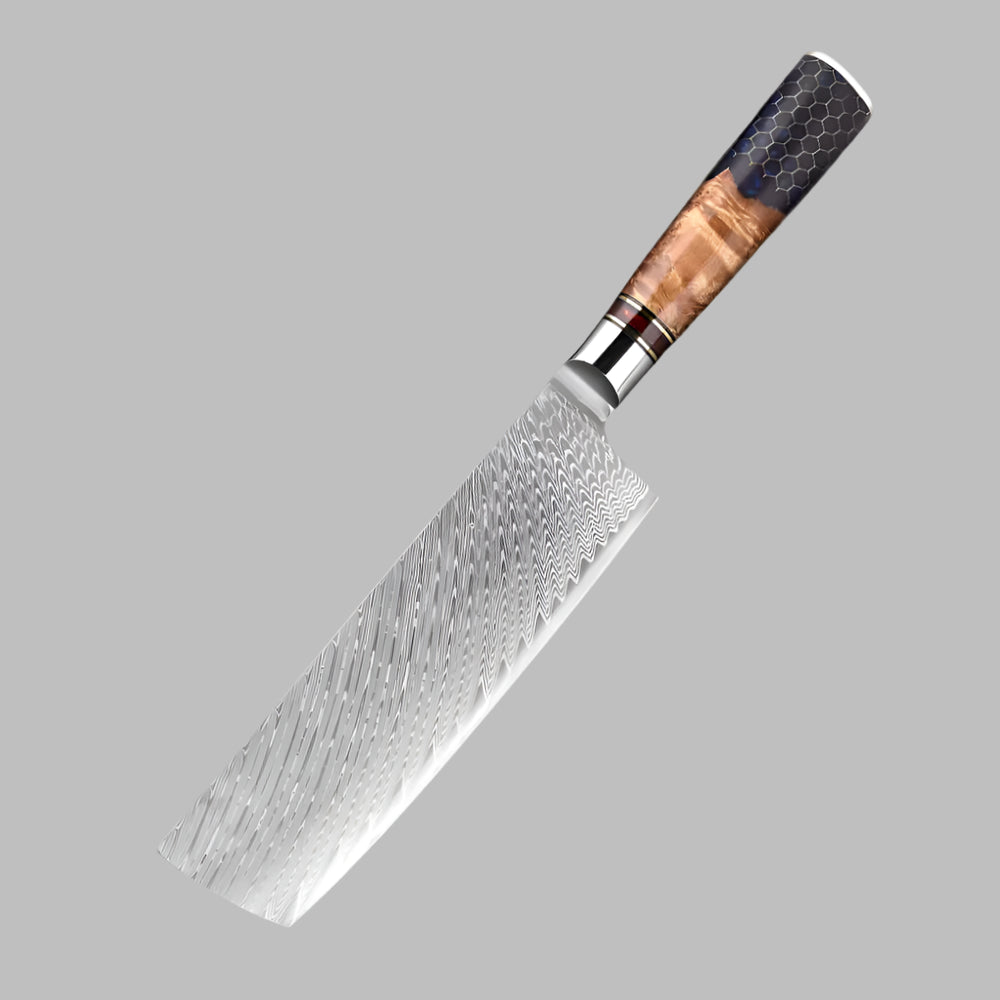 Eleve suas habilidades culinárias com nossa Faca Nakiri Profissional de 7 Polegadas — uma ferramenta essencial para todos os entusiastas da cozinha. Meticulosamente trabalhada em aço inoxidável Damasco premium, esta faca é projetada para precisão e durabilidade, tornando-a uma escolha perfeita para chefs profissionais e cozinheiros domésticos.
