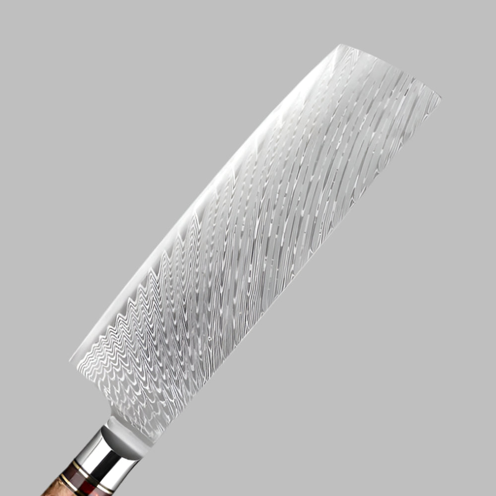 Artesanato excepcional: forjada em aço inoxidável Damasco de alta qualidade, esta faca Nakiri oferece um fio extremamente afiado que permanece afiado por mais tempo, garantindo cortes e picagens sem esforço em todas as ocasiões.